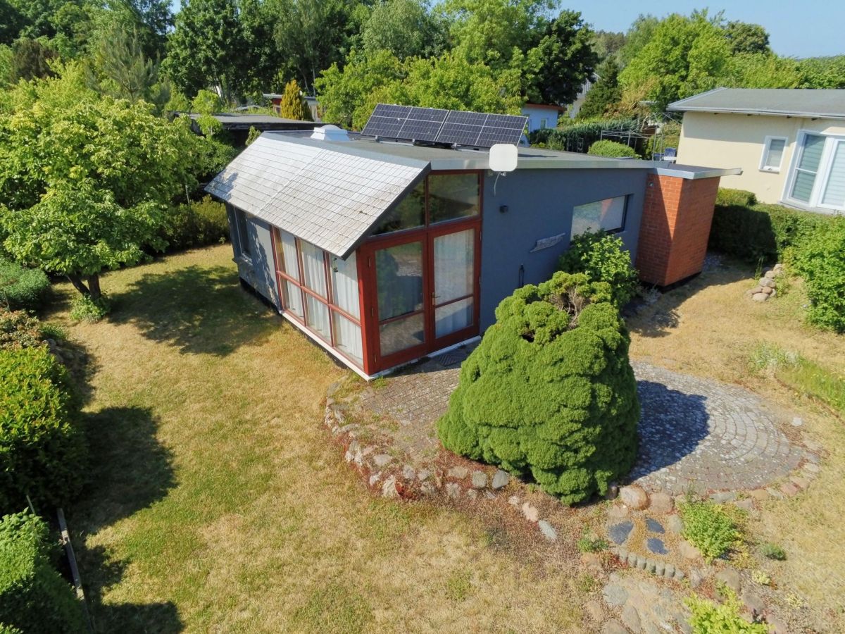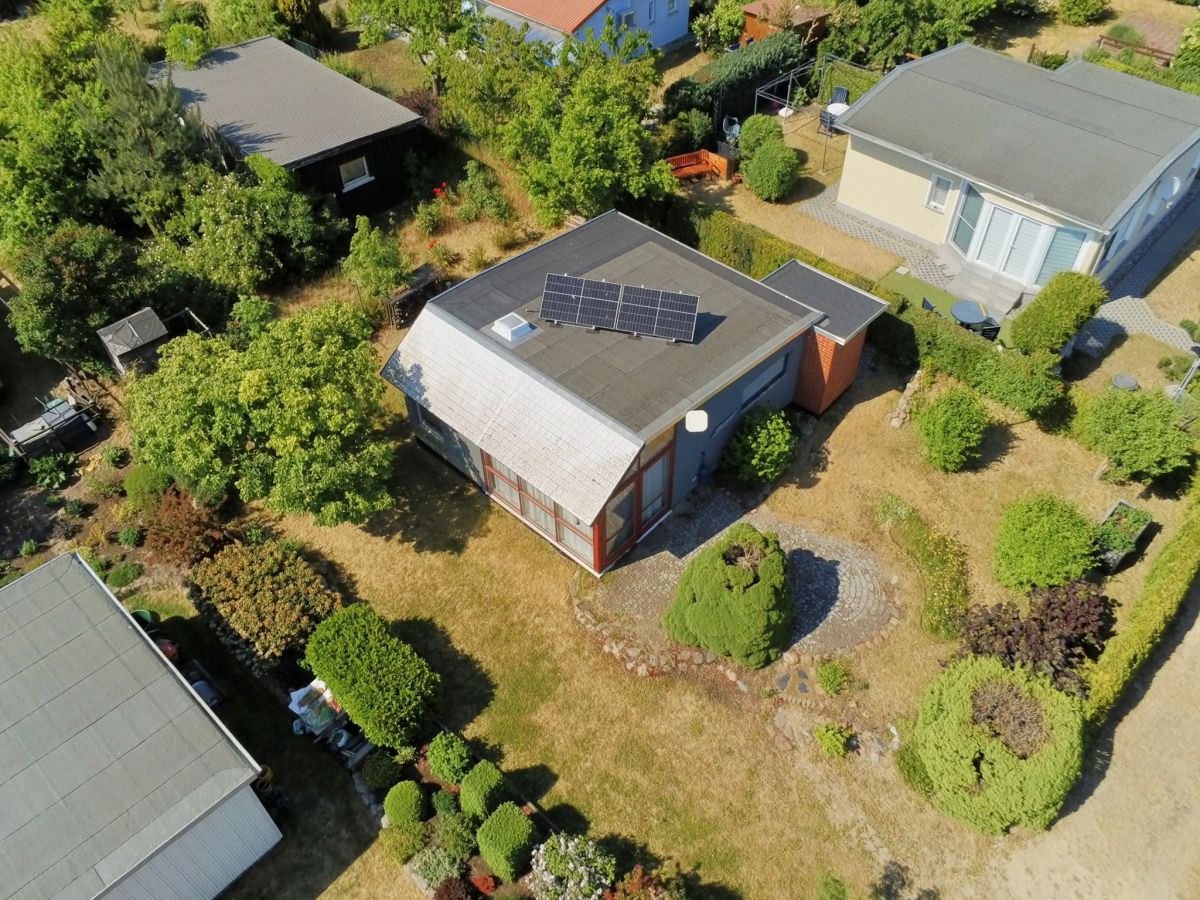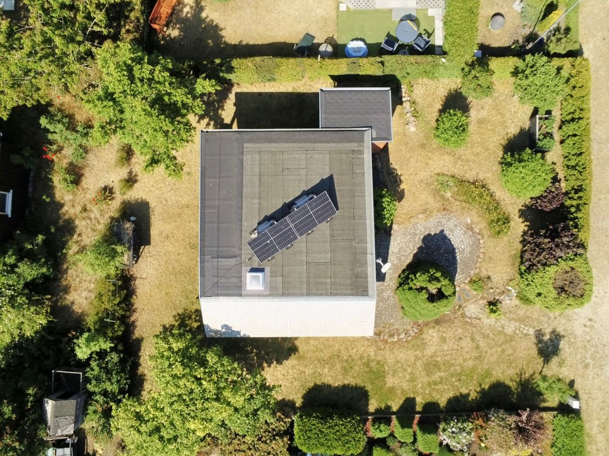 - Balkonkraftwerk auf dem Dach des Gartenhauses aus der Vogelperspektive. Foto: Thomas Stritz