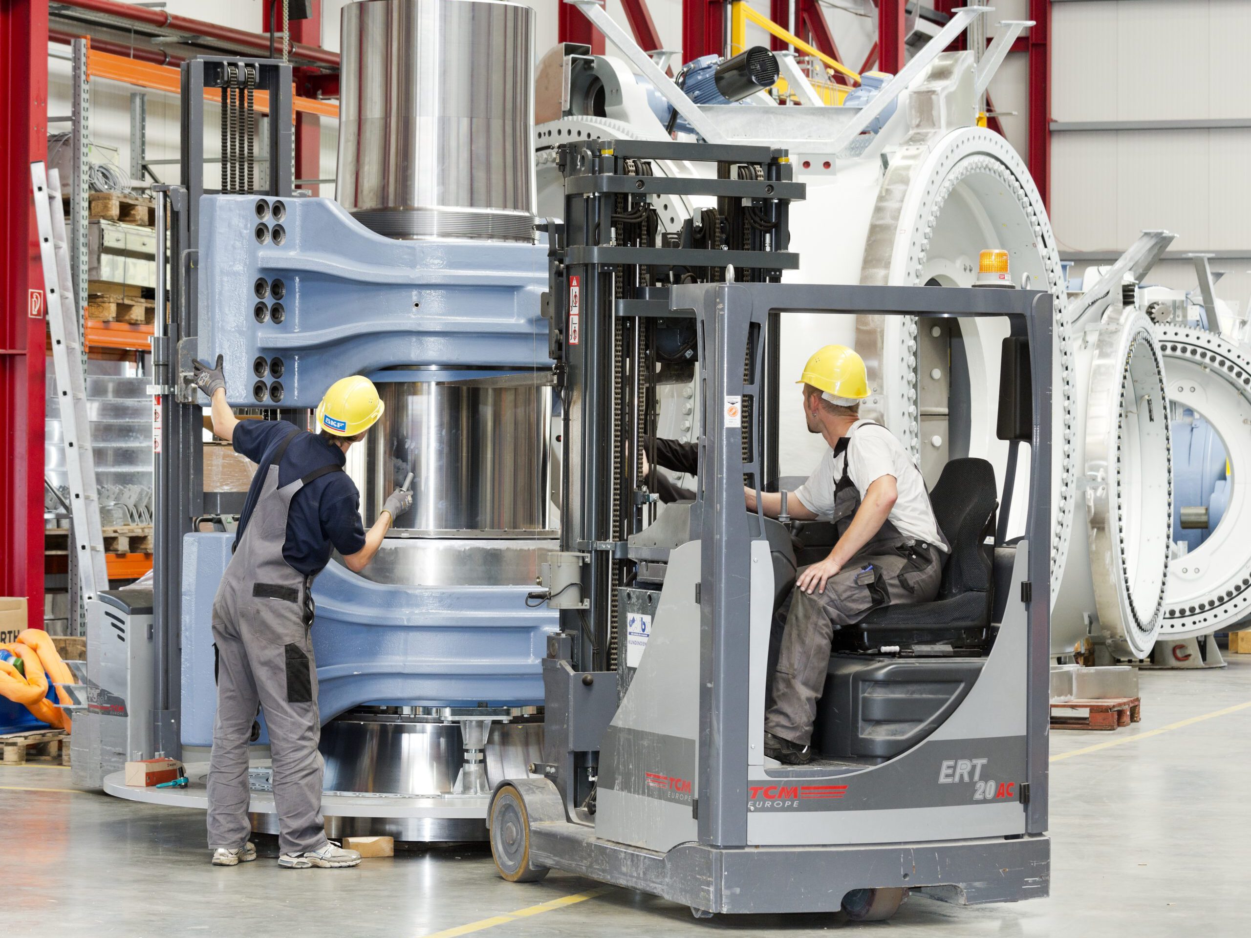 - Arbeiter der eno energy GmbH bei der Fertigung einer Gondel