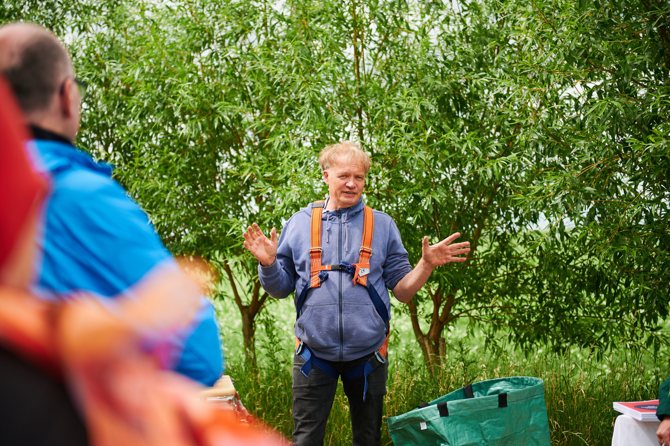 Nach der Begrüßung durch die Teams der LEKA MV und des Landesverbandes Erneuerbare Energien Mecklenburg-Vorpommern e. V. (LEE MV) sowie einer gründlichen Sicherheitsunterweisung durch LEE MV-Vorstand Johann-Georg Jaeger, begaben sich die Teilnehmenden auf den Aufstieg – 220 Leiterstufen hinauf auf das Windrad. In der geöffneten Gondel informierten sich die anwesenden Kommunalpolitiker*innen aus ganz Mecklenburg-Vorpommern über die bevorstehenden Änderungen des Erneuerbare-Energien-Gesetzes (EEG) und die Ausbaupläne des Bundes für Windenergie.