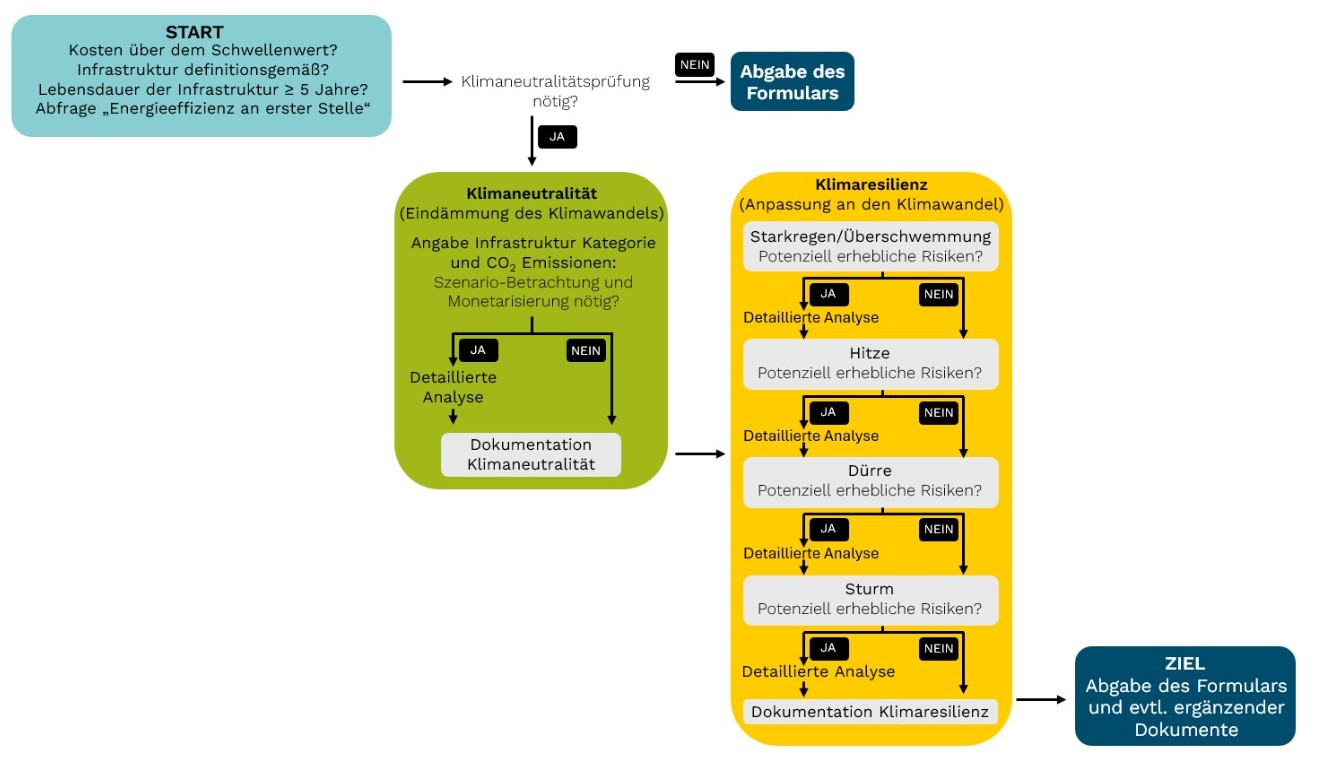 Eine Klimaverträglichkeitsprüfung ist erforderlich, wenn es sich bei dem Fördervorhaben um eine Infrastruktur im Sinne der EU-Vorgaben mit einer Lebensdauer von mindestens fünf Jahren handelt.