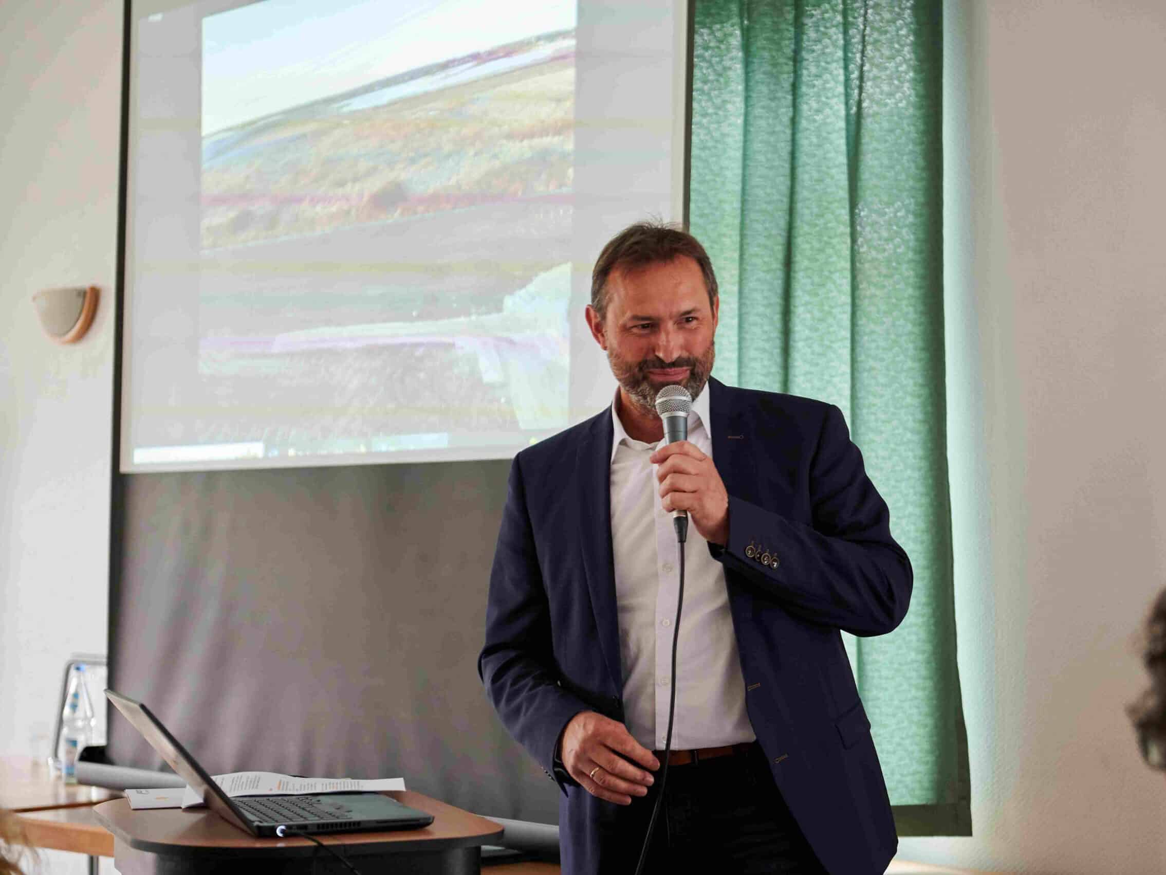 - Auf einer Informationsveranstaltung informiert Marko Schilling über finanzielle Beteiligung an Erneuerbaren